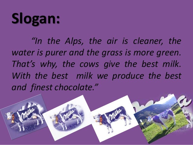 The famous Milka slogans, "Milka" title, and the purple cow have rooted in German culture and are strongly associated with its traditions, especially holidays Going further, the additional merchandized solutions and events, supported and organized by the brand owner company, work as a tool to increase the number of consumers and add more. Full of natural goodness ( Milk Marketing Board advertising slogan ). Slogans are one of the effective ways to draw attention to the Event and their things Slogans have been used in marketing for a very long time but today they’re everywhere, used by all kinds of brands and businesses The role of a good slogan is to point towards the benefits of a product or Campaign.