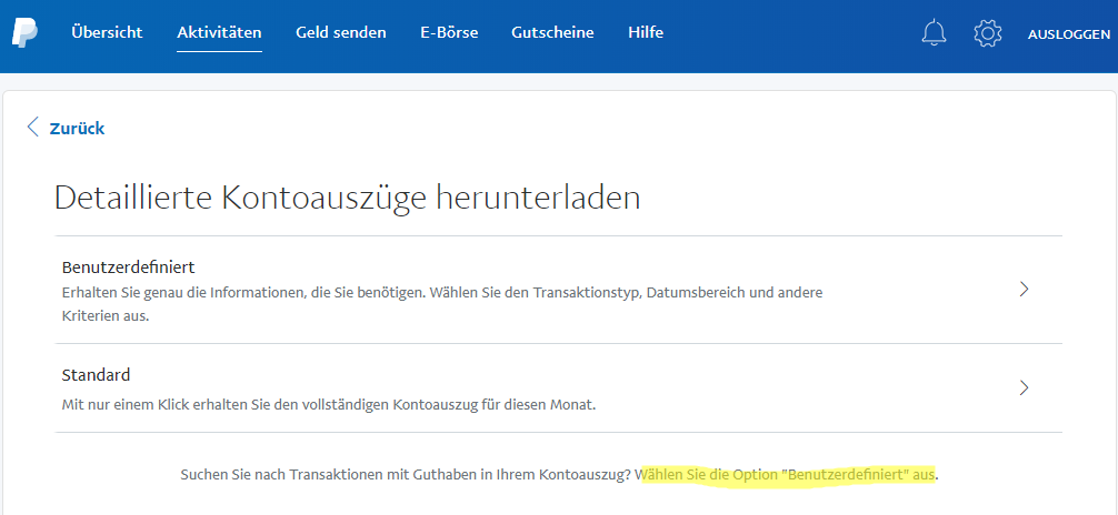 Paypal Kontoauszug Herunterladen Format Wahlen
