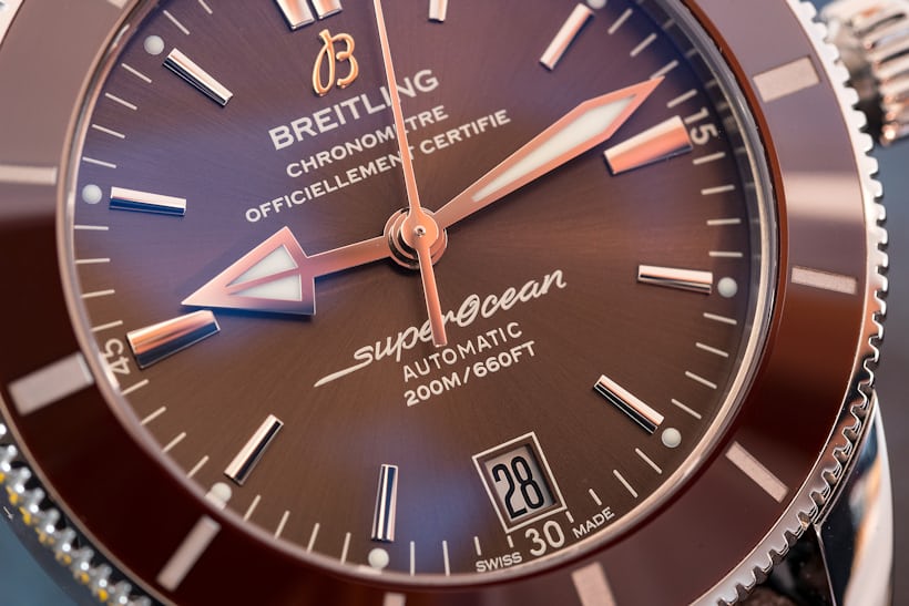 Breitling When it was launched in April, the Superocean Heritage ’57 collection confirmed Breitling’s knack for tapping into the zeitgeist Based on the Swiss luxury brand’s original dive watch. Stainless Steel & 18k Red Gold Black The new Superocean Heritage Chronograph 44 wristwatch powered by the Breitling Caliber 13 automatic movement Movement Caliber Breitling 13 Movement selfwinding mechanical Power reserve approx 48 hrs Chronograph 1/4th second, 30 minutes, 12 hours Vibration 28,800 vph Jewel 25 jewels Calendar Dial aperture UB1A1. March 11, 19 by Ariel Adams In 17, Swiss brand Breitling finally updated its bestselling Superocean Heritage collection with the Superocean Heritage II family, which arrived in a few case sizes, movement options and, of course, color and material choices At the time, I wrote this aBlogtoWatch review comparing the first generation Breitling Superocean Heritage with the Superocean Heritage II.