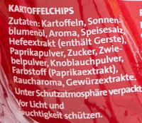 Inhaltsstoffe, Nährwertangaben, Preis, Verfügbarkeit und Alternativen zum Produkt. Potatoes, sunflower oil, aroma, salt, yeast extract (contains barley), paprika powder, sugar, onion powder, garlic powder, paprika extract, smoke aroma, spice extracts Using product information While every care has been taken to ensure product information is correct, food products are constantly being reformulated, so ingredients and allergens may change. Neben Kartoffeln, Öl und Salz kommen häufig auch Aromen und Zusatzstoffe vor, weshalb nicht alle Chips vegan sind Wir zeigen dir, worauf du achten solltest Vegane Chips sind aufgrund diverser Zusatzstoffe keine Selbstverständlichkeit.